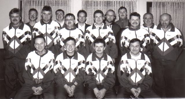 unten von links: Ulrich Fischer, Markus Wittmann, Uwe Weiß, Peter Querfeld, Detlef Hetz, Klaus Weiß, Torsten Werner