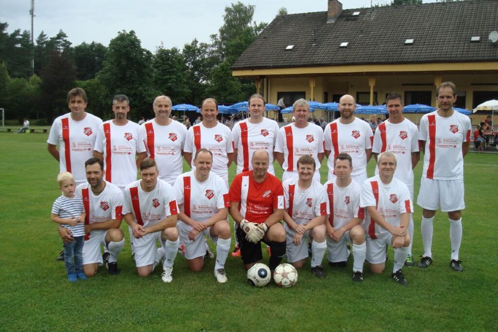 oben von links: Bernd Slotosch, Frank Vogel, Markus Rinke, Detlef Hetz, Uwe Janusch, Steffen Braunreuther, Harry Thiem, Heiko Rosenbauer, Michael Eberhardt; unten von links: Steffen Bauersachs, Peter Niedermeyer, Torsten Werner, Patric Bauer, Abteilungsleiter Andreas Brade (Trikotspender).